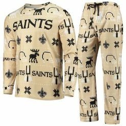 Get in the spirit this season with this set of New Orleans Saints Ugly pajamas from FOCO. Both the top and bottoms are covered in festive, team-inspired graphics – from snowflakes to reindeer to helmets. With soft material, these pajamas are sure to be a nighttime favorite as you rest up before the next New Orleans Saints game.