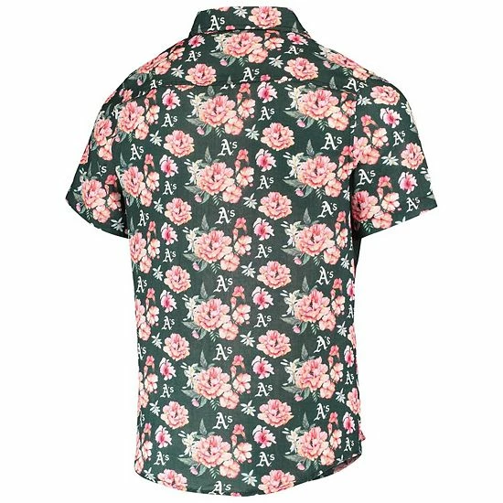 Bring party vibes wherever you go in this Oakland Athletics Floral Linen button-up shirt from FOCO. Its allover pattern features Oakland Athletics graphics and a fun, tropical-inspired design. Additionally, the chest pocket is a convenient place to keep your phone or wallet.