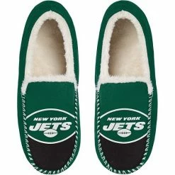 Slip your feet into some cozy New York Jets spirit by grabbing these FOCO Colorblock mocassin slippers. Ideal for lounging at home, the slip-on style and ultra-soft lining ensure a comfy fit. Plus, the striking New York Jets graphics and vibrant colorway show off your pride with every step you take.