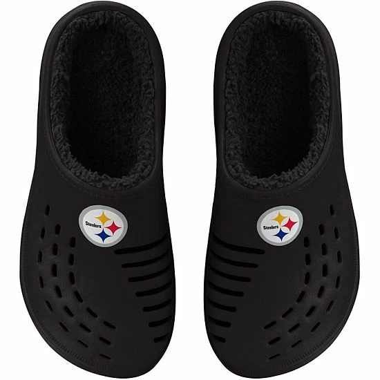 Keep your feet feeling warm and cozy in these Big Logo clog slippers from FOCO. They are lined with super-soft Sherpa fabric and have built-in venting for added comfort. The textured outsole also gives this pair of Pittsburgh Steelers clogs better traction.