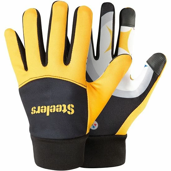 Keep your hands warm while you text, post, or snap with these Pittsburgh Steelers Palm Logo Texting gloves from FOCO. They feature a special material designed to work on touchscreen devices for easy use. Each glove also displays part of the Pittsburgh Steelers logo that forms the whole image when you cross your palms for a striking show of team spirit.