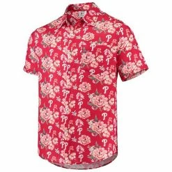 Bring party vibes wherever you go in this Philadelphia Phillies Floral Linen button-up shirt from FOCO. Its allover pattern features Philadelphia Phillies graphics and a fun, tropical-inspired design. Additionally, the chest pocket is a convenient place to keep your phone or wallet.