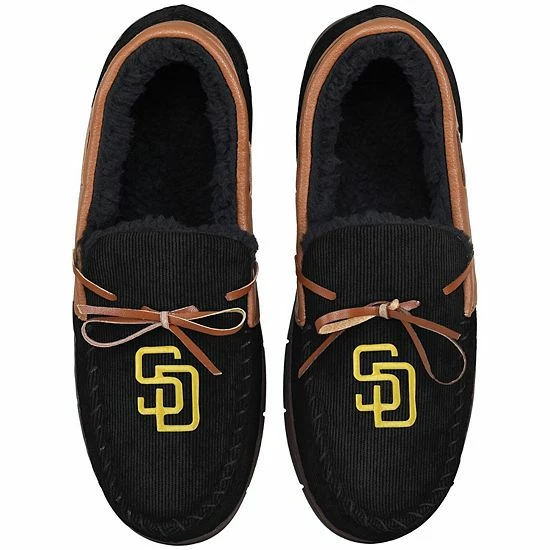 Whether watching the San Diego Padres or enjoying a night in, stay comfortable with these Corduroy moccasin slippers. These FOCO slippers feature a faux fur lining and embroidered team graphics, perfect for adding San Diego Padres fandom whenever worn.