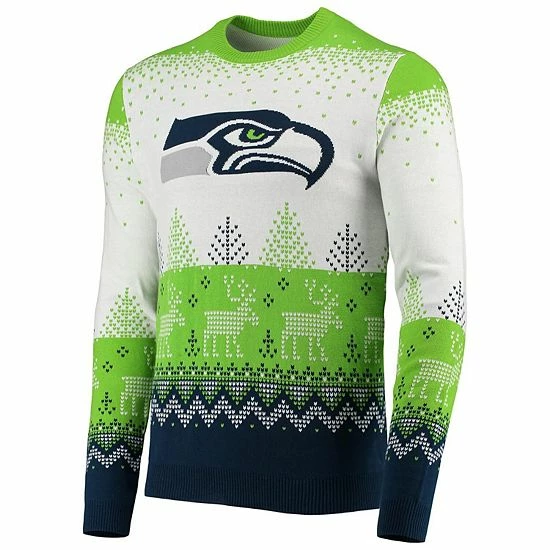Prepare for this season’s inevitable ugly sweater event by grabbing this Big Logo Knit Ugly sweater from FOCO. Its festive design features a bold Seattle Seahawks logo and holiday iconography in a team colorway. Show up ready to support your Seattle Seahawks in this comfy knit pullover.