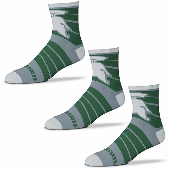 Step out in Michigan State Spartans style with these For Bare Feet Quad socks. This three-pack of socks features crisp graphics and a comfortable design-perfect to wear when you’re gearing up for the next Michigan State Spartans game.