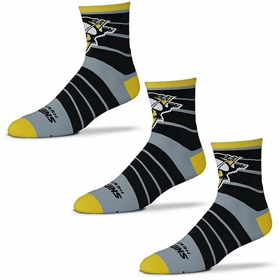 Step out in Pittsburgh Penguins style with these For Bare Feet Quad socks. This three-pack of socks features crisp graphics and a comfortable design-perfect to wear when you’re gearing up for the next Pittsburgh Penguins game.
