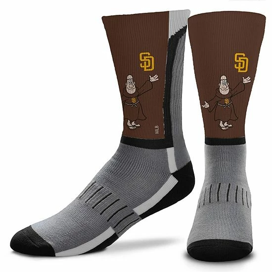 Show your team pride with these Mascot Snoop V-Curve crew socks from For Bare Feet. They feature a formed heel and a support band across the arch to provide all-day comfort. Additionally, the playful San Diego Padres graphics showcase the team’s iconic mascot with every step.