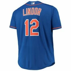 Feel like an official member of the New York Mets in this Francisco Lindor Replica Player jersey. It features authentic team graphics on the front that make your favorite ball club all the more noticeable on game day. This full-button piece of gear features a rounded hem and is made of lightweight polyester for easy, breathable comfort as you support your New York Mets and their star player.