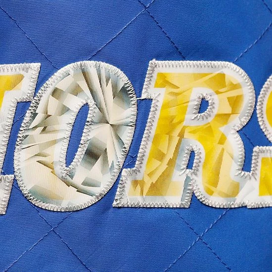 - Stitched holographic applique with faux diamond pattern
