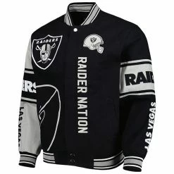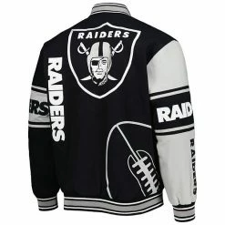 Add an extra layer on those cold days with this Las Vegas Raiders Twill full-snap jacket from JH Design. Featuring a sweet Las Vegas Raiders logo, this piece is perfect for showing your fandom while staying warm. It has various pockets to hold all your game day necessities.