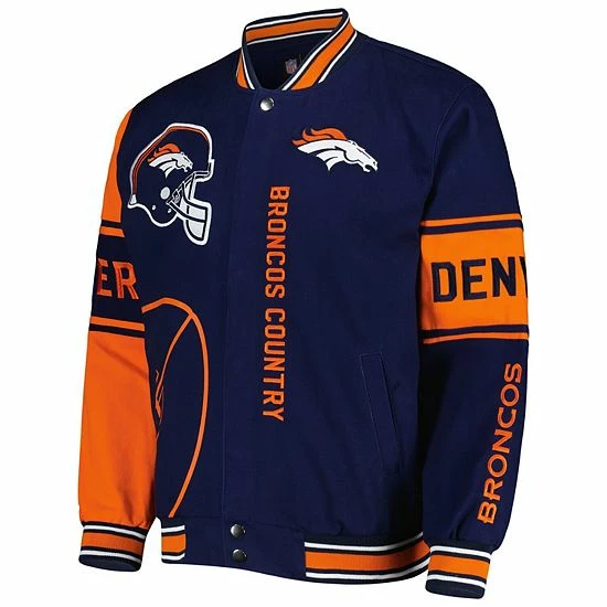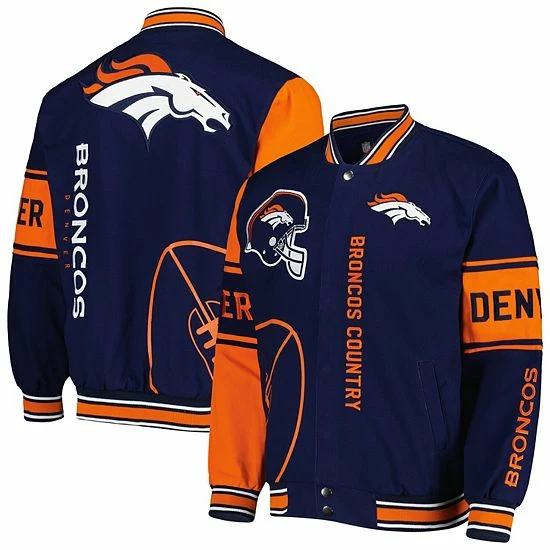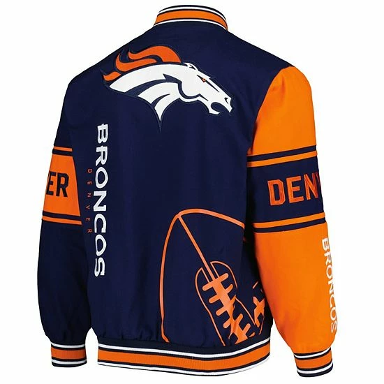 Add an extra layer on those cold days with this Denver Broncos Twill full-snap jacket from JH Design. Featuring a sweet Denver Broncos logo, this piece is perfect for showing your fandom while staying warm. It has various pockets to hold all your game day necessities.