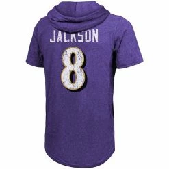 You love the energy Lamar Jackson brings to every game, so show your appreciation by sporting this Player Name and Number Hoodie T-shirt from Fanatics Branded. It’s decked out in Lamar Jackson graphics on the back and the Baltimore Ravens logo across the chest. The tri-blend material also gives this Baltimore Ravens tee a super-soft feel, making it even more comfortable to wear.