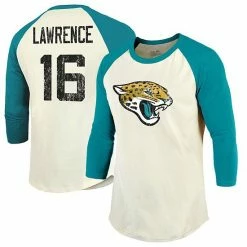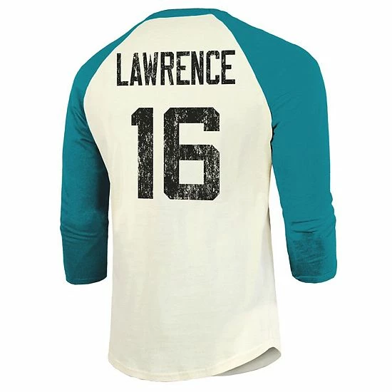 You love to look your absolute best whenever you watch the Jacksonville Jaguars play. Now you can add a classic touch to your game day ensemble by wearing this Trevor Lawrence Vintage Player Name and Number raglan 3/4-sleeve T-shirt from Fanatics Branded. The distressed Jacksonville Jaguars graphics on the front and back of this tee will help you highlight your unwavering loyalty to the team.