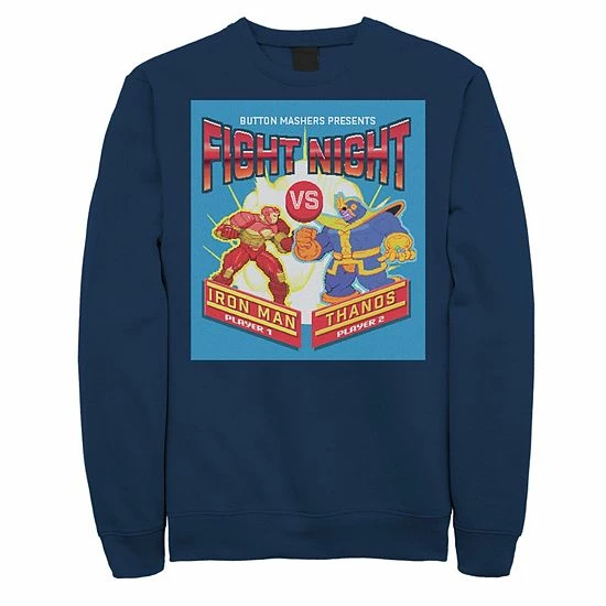 He’ll love the look of this Men’s Marvel Fight Night Iron Man Vs Thanos Vintage Poster Fleece Graphic Top.