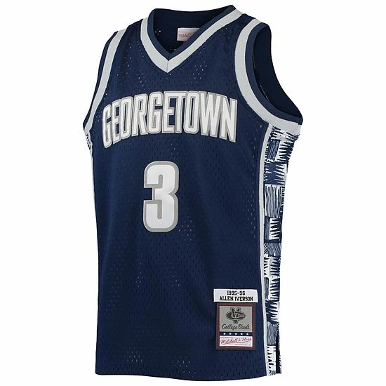 Allen Iverson came into the Georgetown Hoyas scene as a 6-0 freshman guard and left as the first pick in the 1996 NBA draft. Commemorate the tremendous skills and legacy he bestowed upon the Georgetown Hoyas by grabbing this Replica Swingman jersey by Mitchell & Ness. Along with breathable mesh fabric and a sleeveless design for freshness, its authentic design keeps you looking as great as you feel. Best of all, the striking team and Allen Iverson graphics pay homage to one of the greatest athletes to attend Georgetown.