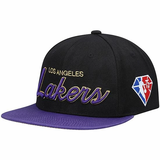 There’s no better way to pay homage to the NBA’s 75th Anniversary than with this Los Angeles Lakers snapback hat by Mitchell & Ness. It features commemorative Los Angeles Lakers graphics and a satin undervisor that pairs for an original fan accessory. Plus, the adjustable closure customizes to your comfy size for all-day comfort.