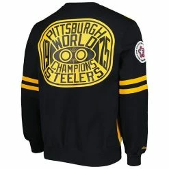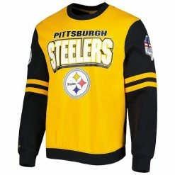 Go big in showing off your Pittsburgh Steelers devotion with this All Over 2.0 pullover sweatshirt from Mitchell & Ness. It features attention-grabbing Pittsburgh Steelers graphics on the front and back. Plus, coordinating sleeve stripes draw even more attention to your passionate fandom.
