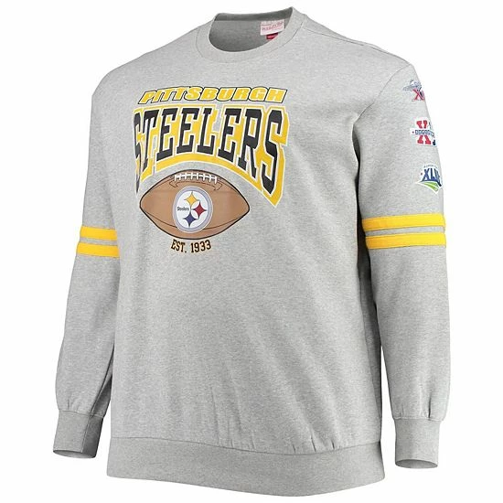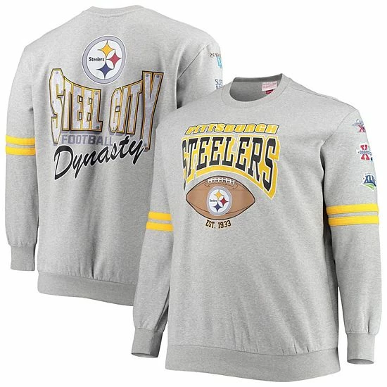 Stay warm as you cheer on the Pittsburgh Steelers in this Allover Print sweatshirt from Mitchell & Ness. It features eye-catching team graphics and sewn-on stripes, making this a fashionable pick for cooler weather. This pullover’s soft fleece lining prioritizes coziness as you rep the Pittsburgh Steelers.