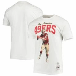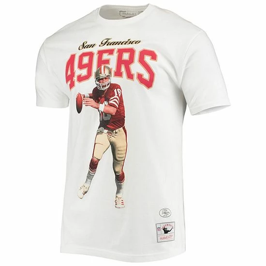As a faithful fan of your San Francisco 49ers, you understand the importance of celebrating 75 glorious years in the making. With this super-soft Mitchell & Ness T-shirt, you can show off unforgettable plays of The Bay while paying homage to Joe Montana and his contributions to the squad. Additionally, the San Francisco 49ers and player graphics throughout the piece show your love for Joe Montana while commemorating the legendary past of the team.