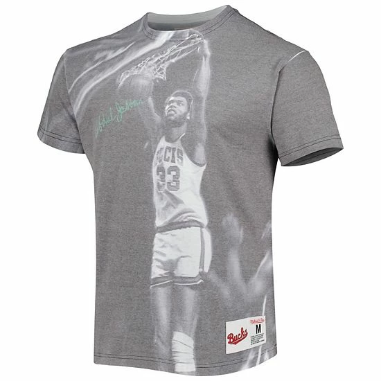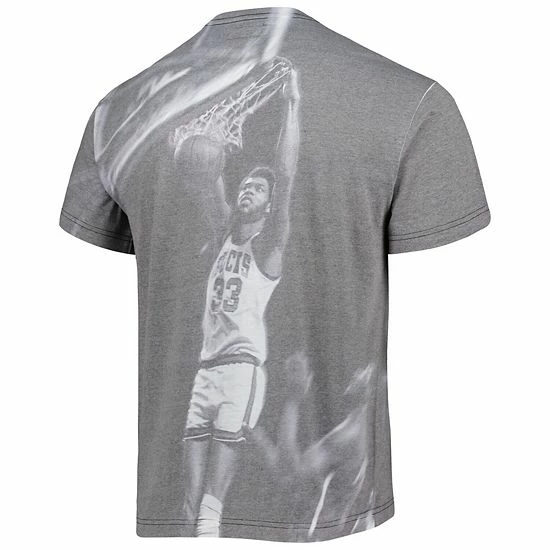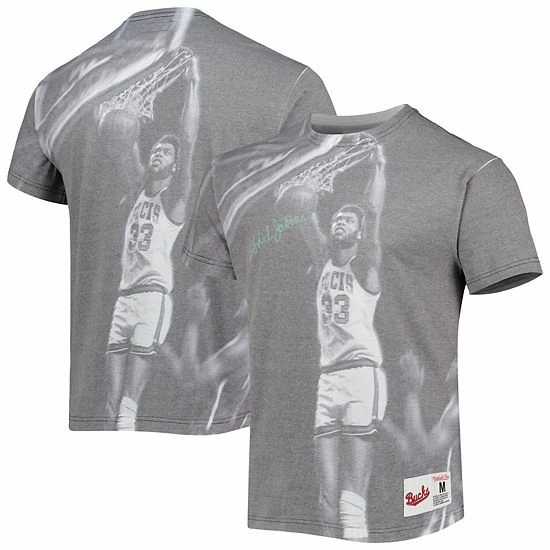 Remember all of the iconic moments that Kareem Abdul-Jabbar had with the Milwaukee Bucks with this Above The Rim T-shirt from Mitchell & Ness. It features an eye-catching sublimated design of the former Milwaukee Bucks star rising up into the air for a highlight dunk. The blend of fabrics making up this tee is sure to keep you cool and comfortable while you pay homage to Kareem Abdul-Jabbar.