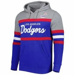 Enjoy a vibrant, Los Angeles Dodgers-inspired look and cut through the cold in this Head Coach hoodie from Mitchell & Ness. This two-toned pullover is decorated with a distinct script across the chest, a comfortable midweight design and a classic front pouch pocket. Look like you’re ready to call the shots and propel your squad to a hard-earned victory any time the temperature drops when you reach for this riveting Los Angeles Dodgers pullover.