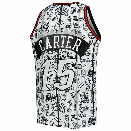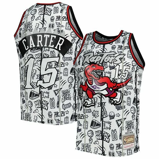 Stand out from the crowd at the next Toronto Raptors game or watch party by grabbing this Vince Carter Hardwood Classics Doodle Swingman jersey by Mitchell & Ness. This jersey highlights one of your all-time favorite players throughout the storied history of your favorite franchise. Complete with tackle-twill Toronto Raptors graphics, this stylish jersey shows that you’re more than just a casual fan.