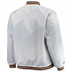 For an eye-catching display of Los Angeles Lakers pride, grab this spirited Hardwood Classics full-snap jacket from Mitchell & Ness. It features a bold Los Angeles Lakers applique and a glossy satin fabric for a smooth yet timeless look. With roomy raglan sleeves, a cozy quilted lining and front slip pockets, this vibrant jacket is the perfect way to showcase your fandom in style.