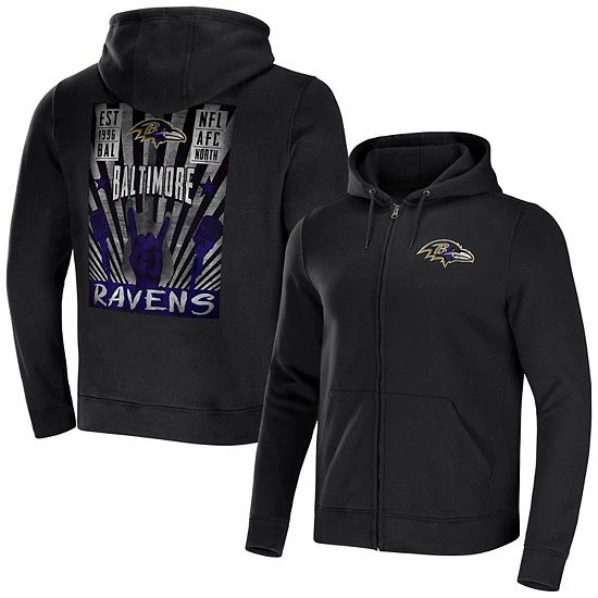 Boost your collection of Baltimore Ravens apparel with this Rocker full-zip hoodie from NFL x Darius Rucker Collection by Fanatics. Not only does it feature the team’s logo on the chest, but it has graphics on the back of the year they were established, their division, two microphones and more, which show that you are a rock star of a fan. The two front pockets are great for storing away your keys, phone, tickets or any other Baltimore Ravens game day essentials.