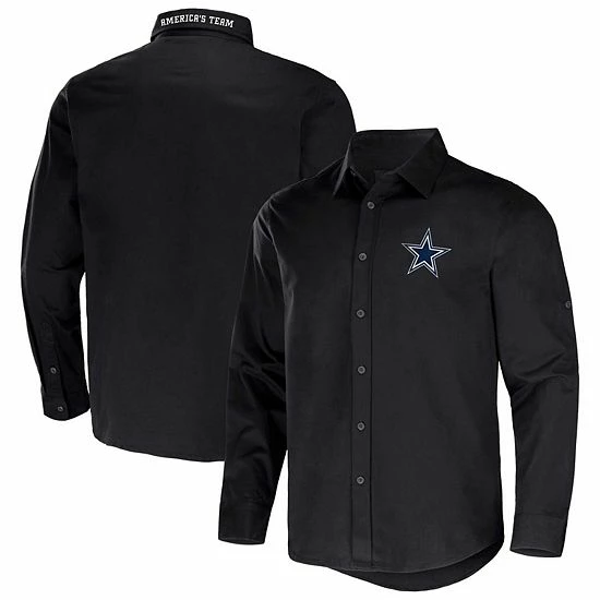 Add an exciting piece of Dallas Cowboys apparel to your rotation with this Convertible Twill button-up shirt from NFL x Darius Rucker Collection by Fanatics. Whether you choose to wear it as a long sleeve top or button up the sleeves, you’ll be representing the the Dallas Cowboys in style. The team’s logo on the chest and their iconic catchphrase across the back of the collar will help get you pumped up for game day.
