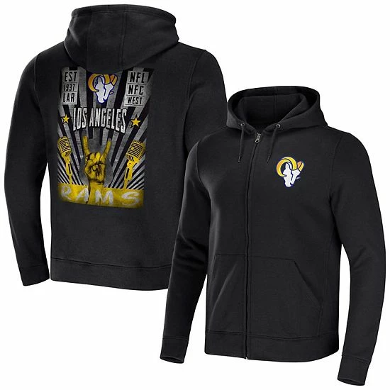 Boost your collection of Los Angeles Rams apparel with this Rocker full-zip hoodie from NFL x Darius Rucker Collection by Fanatics. Not only does it feature the team’s logo on the chest, but it has graphics on the back of the year they were established, their division, two microphones and more, which show that you are a rock star of a fan. The two front pockets are great for storing away your keys, phone, tickets or any other Los Angeles Rams game day essentials.