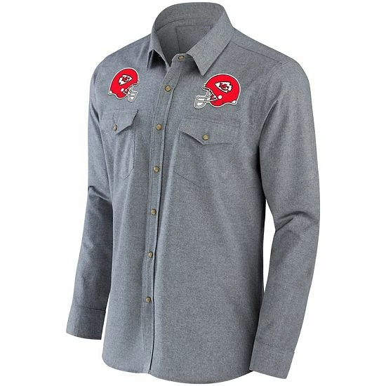 Combine western flair and your Kansas City Chiefs spirit with this button-up shirt from NFL x Darius Rucker Collection by Fanatics. It features lightweight chambray fabric that resembles the look of denim but with a softer texture. As the finishing touch, printed Kansas City Chiefs graphics show everyone which team you pull for on the gridiron.