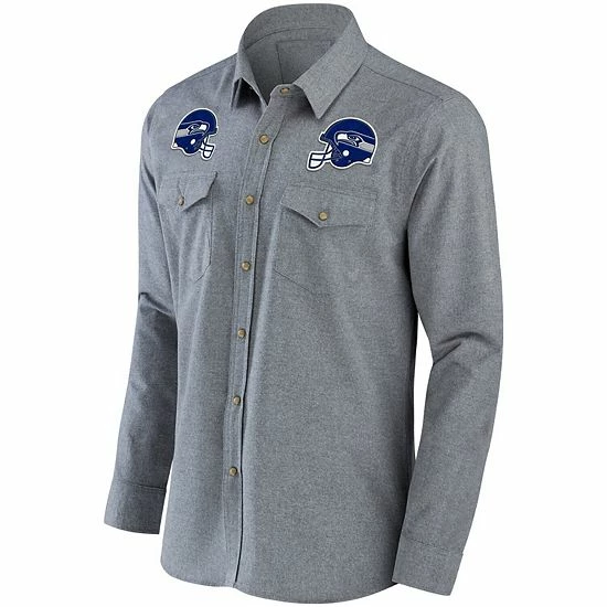 Combine western flair and your Seattle Seahawks spirit with this button-up shirt from NFL x Darius Rucker Collection by Fanatics. It features lightweight chambray fabric that resembles the look of denim but with a softer texture. As the finishing touch, printed Seattle Seahawks graphics show everyone which team you pull for on the gridiron.