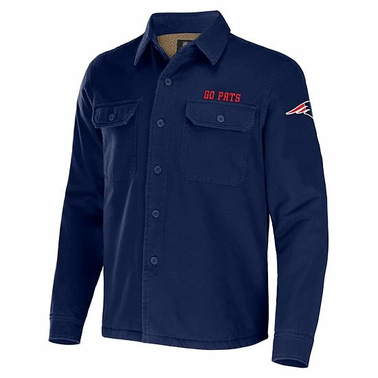 This Canvas button-up from the NFL x Darius Rucker Collection by Fanatics adds a rugged, stylish look to your New England Patriots gear. Designed with embroidered New England Patriots graphics for a one-of-a-kind look, this shirt jacket keeps you warm with its sherpa lining and midweight design. A longer hem also provides some extra coverage.