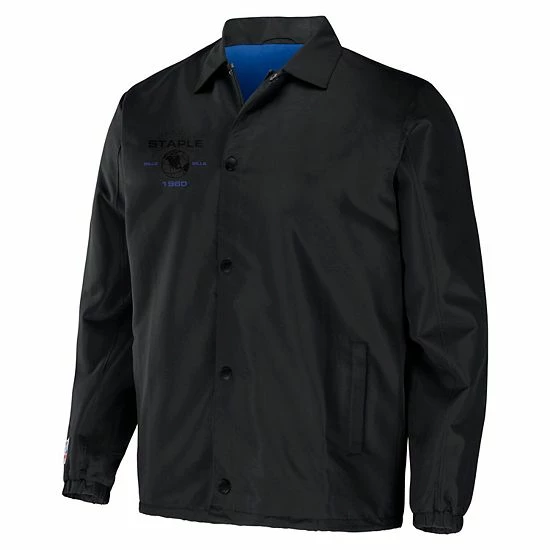 Celebrate 25 years of streetwear from Staple by grabbing this Buffalo Bills NFL x Staple Collection Coaches Full-Snap Jacket. The bold graphics embody the intersection of sport and design through the lens of street culture. Rep your team with this exclusive collection that features unmistakable Buffalo Bills insignia.