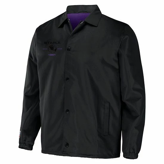 Celebrate 25 years of streetwear from Staple by grabbing this Minnesota Vikings NFL x Staple Collection Coaches Full-Snap Jacket. The bold graphics embody the intersection of sport and design through the lens of street culture. Rep your team with this exclusive collection that features unmistakable Minnesota Vikings insignia.