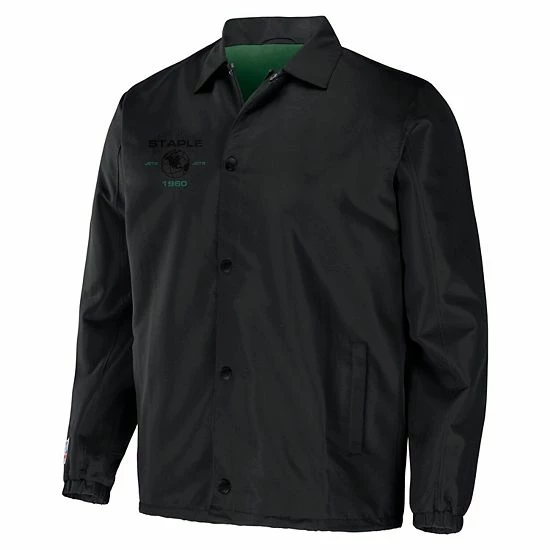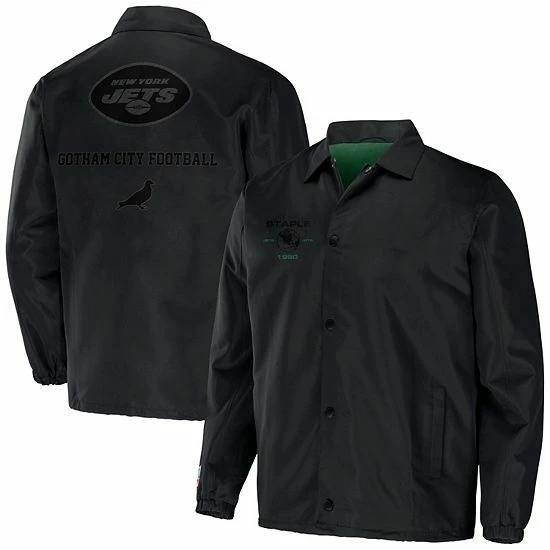 Celebrate 25 years of streetwear from Staple by grabbing this New York Jets NFL x Staple Collection Coaches Full-Snap Jacket. The bold graphics embody the intersection of sport and design through the lens of street culture. Rep your team with this exclusive collection that features unmistakable New York Jets insignia.