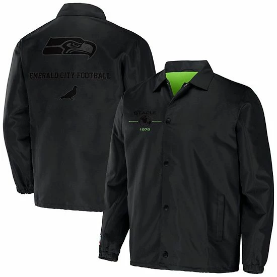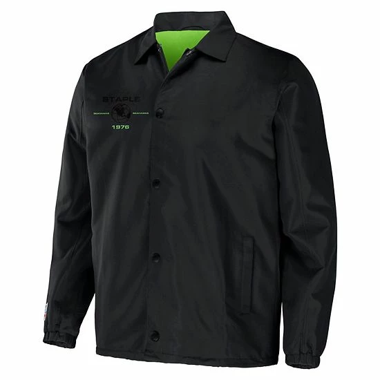 Celebrate 25 years of streetwear from Staple by grabbing this Seattle Seahawks NFL x Staple Collection Coaches Full-Snap Jacket. The bold graphics embody the intersection of sport and design through the lens of street culture. Rep your team with this exclusive collection that features unmistakable Seattle Seahawks insignia.