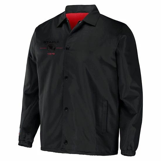 Celebrate 25 years of streetwear from Staple by grabbing this Tampa Bay Buccaneers NFL x Staple Collection Coaches Full-Snap Jacket. The bold graphics embody the intersection of sport and design through the lens of street culture. Rep your team with this exclusive collection that features unmistakable Tampa Bay Buccaneers insignia.