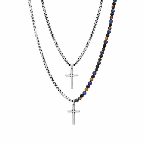 Featuring a double-strand design accented with colorful beads and a pair of crosses, this men’s stainless steel necklace conveys your faith in a stylish way.