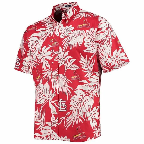 Make every day feel a little like paradise with this Aloha button-up shirt from Reyn Spooner. Crafted with a tropical design and distinctive St. Louis Cardinals details, this dashing top instantly elevates your game day look. The soft cotton fabric and side splits at the hem maximize comfort, helping you feel great throughout each inning.