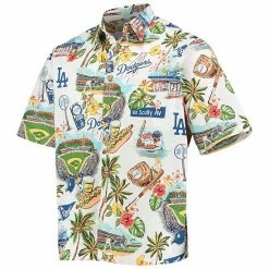 Add flair to your closet with this Los Angeles Dodgers Scenic button-up shirt from Reyn Spooner. The full-button front and chest pocket give off a classic look, but this top is anything but ordinary. Unique graphics commemorate the many great moments in Los Angeles Dodgers history, so old and new fans alike can fully embrace their fandom.