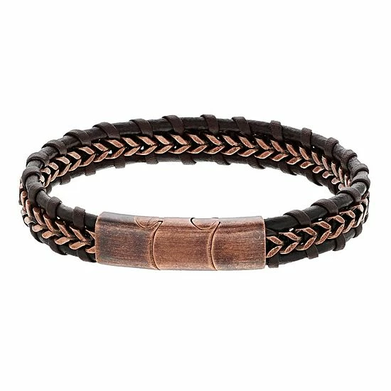 Complete your look with the distinctive design of this men’s braided leather bracelet.