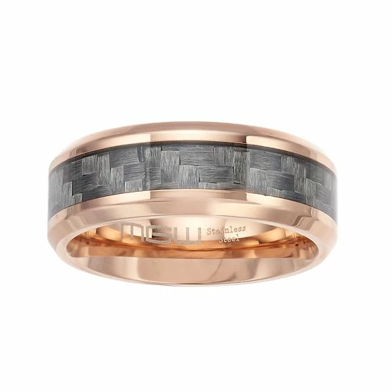 A gray carbon fiber inlay gives this men’s stainless steel ring a contemporary look you’re sure to love.