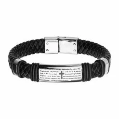 Display your faith in a handsome way with this men’s black leather “The Lord’s Prayer” bracelet.