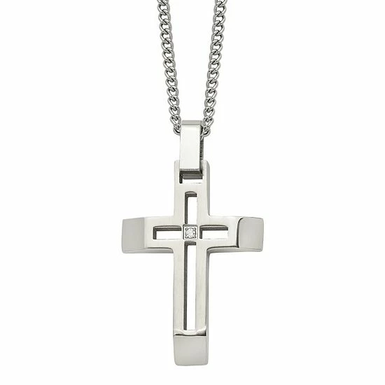 Wear your faith close to your heart with this men’s stainless steel cross pendant.
