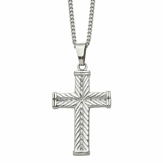 Showcase your faith with this distinctive men’s stainless steel cross pendant.