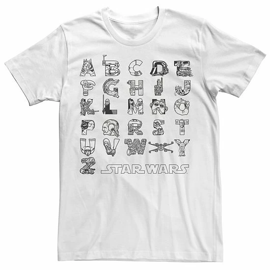 Your Star Wars fan will love showing off his fandom with this Men’s Star Wars Alphabet Characters Graphic Tee.