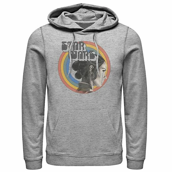 He’ll love the look of this Men’s Star Wars The Rise of Skywalker Rey Vintage Rainbow Graphic Hoodie.