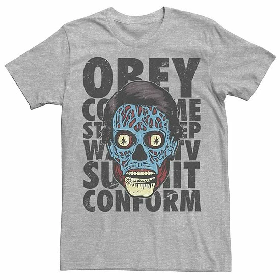 He’ll love the playful style of this Men’s They Live Alien Face Text Stack Graphic Tee.