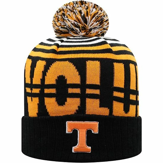 Draw attention to your Tennessee Volunteers fandom with this Colossal cuffed knit hat from Top of the World. It features a vivid knit pattern all the way around that highlights the embroidered Tennessee Volunteers logo and fluffy pom in team colors. Additionally, the stretch construction provides a snug fit to keep heat inside.